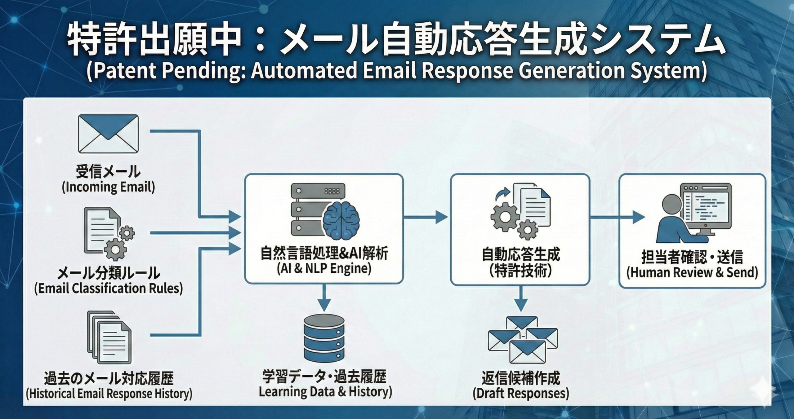 このたび、セールスシステム株式会社では、AIと業務プロセスの融合による業務効率化を目的として、メール対応業務を革新する新たなシステムに関する特許を出願いたしました