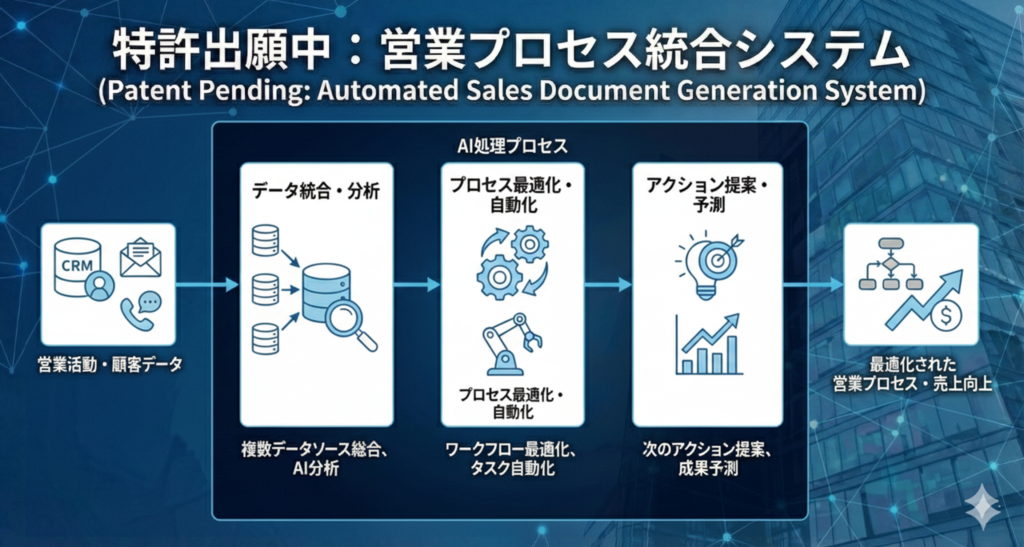 【特許出願のお知らせ】営業プロセス統合に関する技術を出願しました(特願2025-115812)特許出願のお知らせ このたびセールスシステム株式会社では、法人営業における業務プロセスの一括最適化と自動化を実現する新たな技術について、以下の通り特許出願を行いましたので…