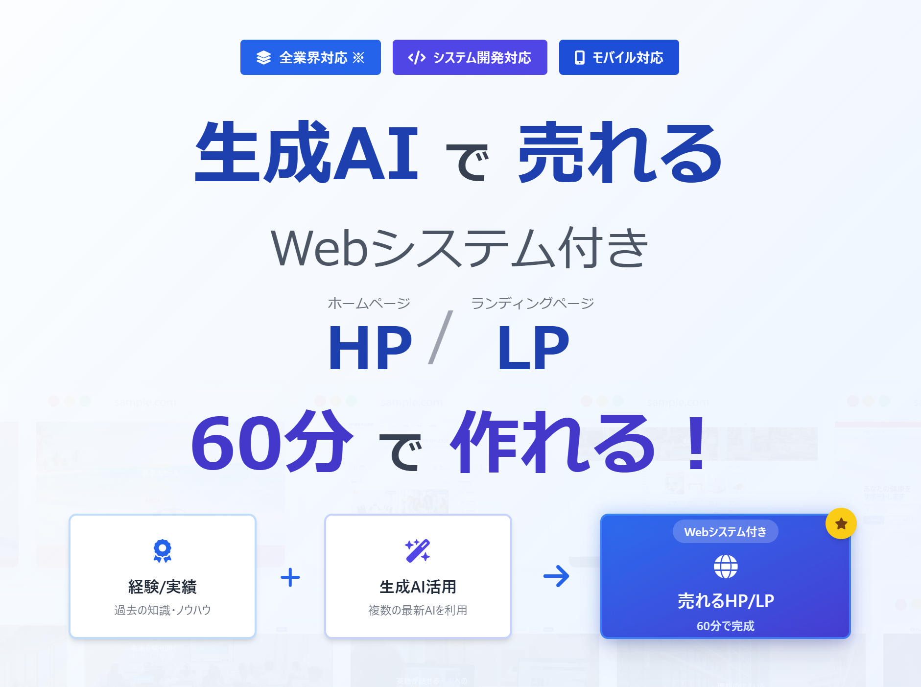 様々な生成AIツールを駆使して、約60分でWebシステム付きのホームページ・ランディングページ(HP/LP)の制作・開発法を公開。